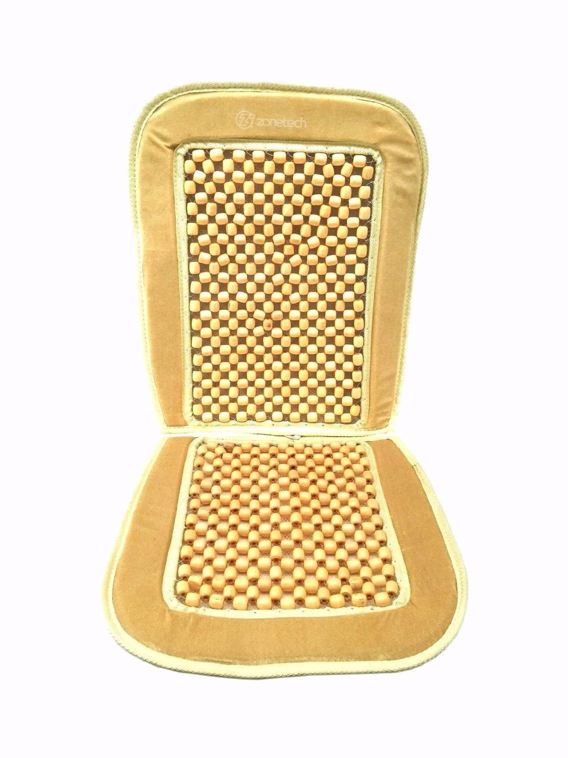 Zone Tech Wooden Beaded Massage Car Chair Seat Cushion Cover Natural and Black
